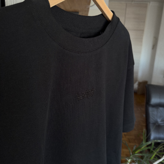 •all black t shirt •100% pamuk 240g •vez na grudima •sito štampa na ledjima •brattboi fit